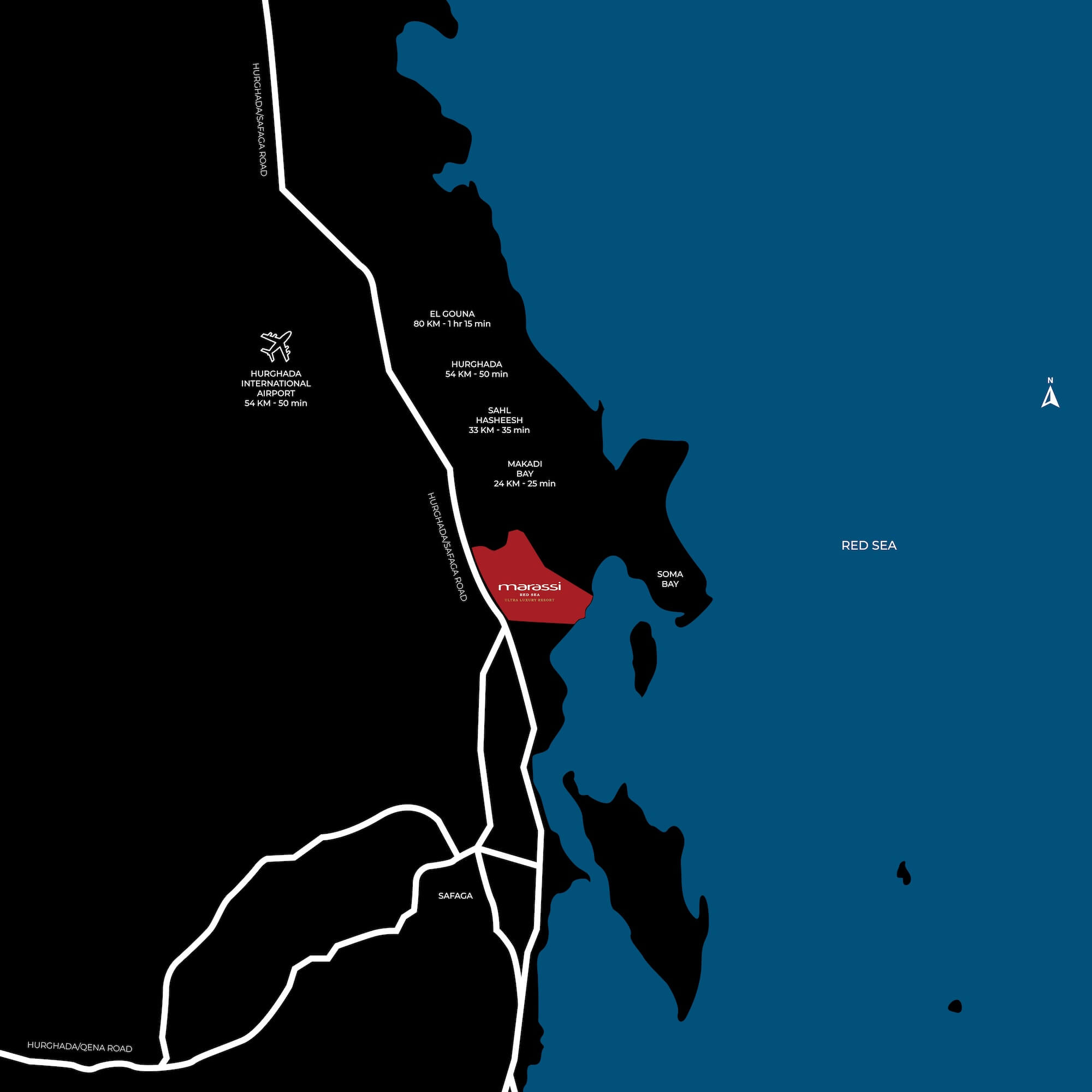 Strategically located along Egypt’s pristine Red Sea coastline, Marassi Red Sea offers a rare balance of natural seclusion and effortless accessibility. Set against crystal-clear waters and unspoiled landscapes, the destination provides a tranquil coastal retreat while remaining well connected to key hubs. With easy access to major airports and road networks, Marassi Red Sea is ideal for both weekend escapes and extended stays, a refined destination designed for year-round living by the sea.